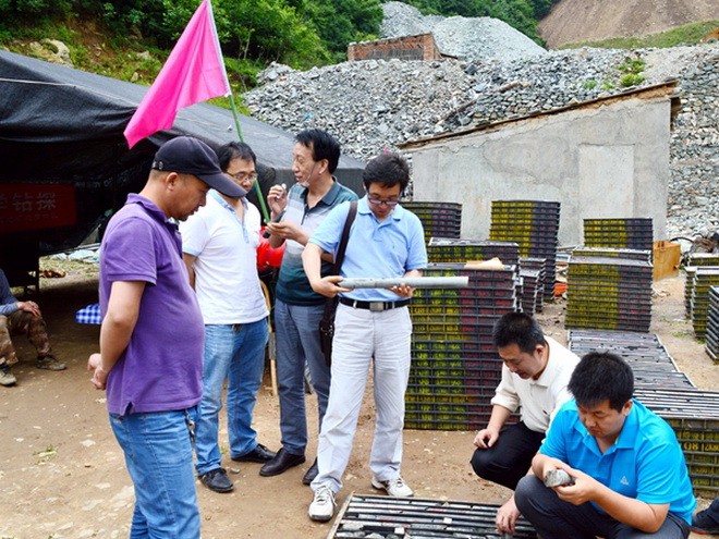 深孔項(xiàng)目的實(shí)施得到了各級(jí)領(lǐng)導(dǎo)的高度重視和支持。2014年11月18日,小秦嶺科研深孔第一鉆正式開鉆,省地礦總公司總工程師齊文、省地調(diào)院地調(diào)中心和我隊(duì)有關(guān)領(lǐng)導(dǎo)親臨現(xiàn)場指導(dǎo)。施工期間,鉆探界的同仁多次來現(xiàn)場,給予了技術(shù)上的支持和幫助。王根寶隊(duì)長、王戰(zhàn)社書記經(jīng)常深入工地指導(dǎo)工作、協(xié)調(diào)關(guān)系,督促檢查安全,要求工程公司精心組織、科學(xué)施工,確??蒲秀@探項(xiàng)目實(shí)現(xiàn)預(yù)期目標(biāo)。
