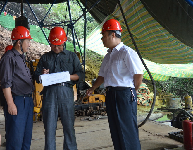 8月18日小秦嶺金礦田成礦規(guī)律與深部成礦預(yù)測研究的深孔驗(yàn)證項(xiàng)目第二個(gè)鉆孔正式開鉆,鉆孔設(shè)計(jì)孔深1880米。隊(duì)黨委書記兼副隊(duì)長王戰(zhàn)社、紀(jì)委書記王和平及省基金辦、省地調(diào)中心等單位有關(guān)領(lǐng)導(dǎo)參加了開工儀式。