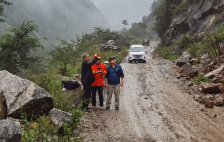 領(lǐng)導(dǎo)對崩塌現(xiàn)場險情查看指導(dǎo)