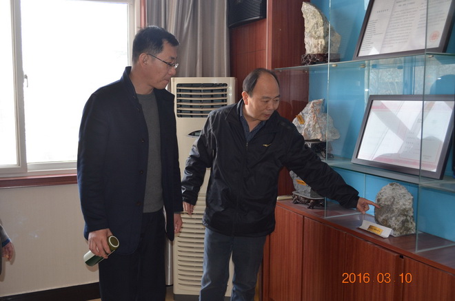 座談會結(jié)束后,劉總一行來到隊三樓會議室,興致勃勃的參觀了我隊地質(zhì)樣品展臺。王隊長就我隊近年來企業(yè)文化建設(shè)情況向劉總作了介紹。