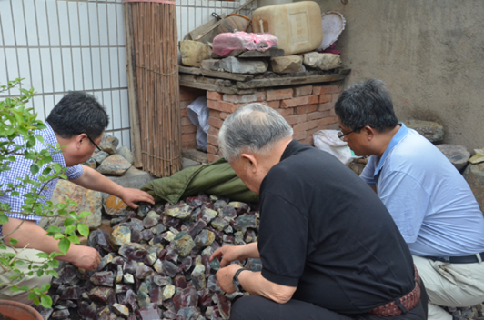 在院子,老部長躬下身子,仔細察看王新海開采的瑪瑙礦石??吹嚼贤跤盟疂姖驳V石時,老部長風趣的夸獎到,你蠻有經(jīng)驗啊,是行家嘛!