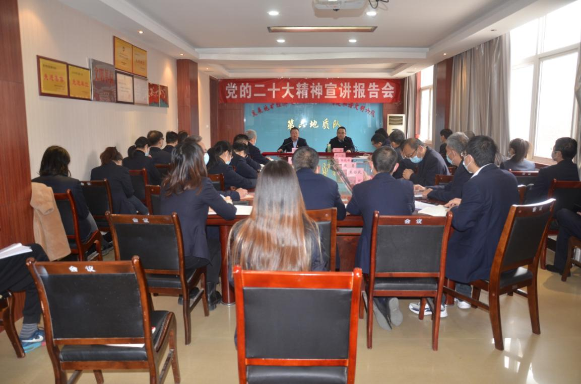 11月29日,陜西地礦集團(tuán)公司黨的二十大精神宣講團(tuán)成員、集團(tuán)公司黨委委員、總會(huì)計(jì)師劉勐帶隊(duì)來(lái)我公司宣講黨的二十大精神。公司黨委書記、執(zhí)行董事劉曉東主持會(huì)議。公司領(lǐng)導(dǎo)班子成員以及黨員干部共計(jì)40余人參加會(huì)議。