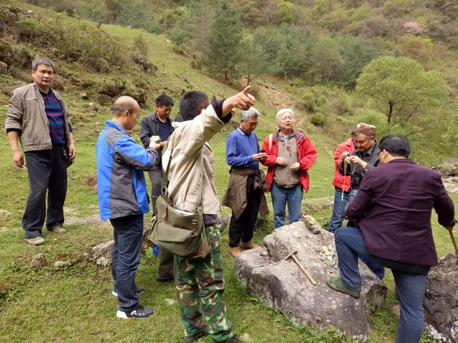 在驗(yàn)收期間,專家組在詳細(xì)聽取了項(xiàng)目負(fù)責(zé)趙西鋒關(guān)于項(xiàng)目野外工作情況匯報(bào)后,重點(diǎn)對(duì)發(fā)現(xiàn)的金礦化點(diǎn)和兩條晶質(zhì)石墨、金紅石、矽線石礦帶進(jìn)行了實(shí)地檢查驗(yàn)收。