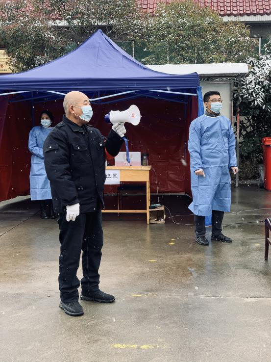 “微信運(yùn)動(dòng)幾萬(wàn)步”,確保每棟樓、每個(gè)人做核酸。受疫情影響,大家不能出門,只能待在家里,然而,六隊(duì)志愿者日行萬(wàn)步卻成為常態(tài)。代王基地設(shè)置了代東社區(qū)核酸點(diǎn),西安基地設(shè)置了明園社區(qū)核酸點(diǎn)。每次核酸檢測(cè)志愿者都要與社區(qū)人員進(jìn)行對(duì)接,協(xié)調(diào)社區(qū)共計(jì)900人左右的核酸隊(duì)伍,維護(hù)現(xiàn)場(chǎng)秩序?!?2號(hào)樓一單元的同志,下樓做核酸了”、“15號(hào)樓3單元的同志,下樓做核酸了”,為防止人員聚集,造成交叉感染,院內(nèi)租住的用戶都是志愿者一樓一樓的叫下來的。代王基地院子內(nèi)一共10棟樓,360人,西安基地一共4棟樓,290人。為確保不漏一戶、不漏一人,志愿者每次都要一次次的繞著院子來回的“喊”。除此之外,志愿者要在核酸檢測(cè)人員來之前擺好核酸檢測(cè)設(shè)施,拉好警戒線,連接網(wǎng)絡(luò)專線、通電、安裝照明燈,一片都不漏的對(duì)場(chǎng)地以及進(jìn)院子的人員進(jìn)行徹底消殺。在核酸檢測(cè)結(jié)束,人員離開場(chǎng)地后,志愿者仍然堅(jiān)守在崗位上,因?yàn)樗麄冞€要將醫(yī)用垃圾專員清理拉走,再次對(duì)場(chǎng)地及人員做一次徹底消殺。在維護(hù)核酸檢測(cè)隊(duì)伍秩序時(shí),面對(duì)不理解、抱怨聲,他們選擇用真情感染者每家每戶。