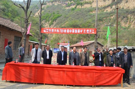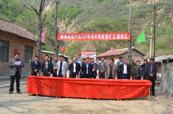 4月18日上午10時30分,我隊(duì)潼關(guān)整裝勘查合作開發(fā)項(xiàng)目(國家整裝勘查小秦嶺第一坑)——720巷道中深部探礦工程開工儀式在潼關(guān)榮易溝隆重舉行。省地礦總公司總工齊文、勘查開發(fā)部主任馬貴鎖、地質(zhì)調(diào)查研究中心副主任侯滿堂蒞臨了開工儀式并做重要講話。王根寶隊(duì)長致歡迎詞,隊(duì)黨委書記冀興臣宣布開工。隊(duì)領(lǐng)導(dǎo)、中層干部及合作單位施工人員近100人參加了開工儀式。