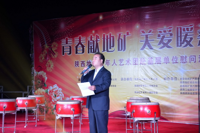 2015年10月19日下午十九點(diǎn)三十分由陜西省地質(zhì)礦產(chǎn)開發(fā)總公司、陜西地礦總公司老年人文體協(xié)會(huì)主辦的“青春獻(xiàn)地礦 關(guān)愛(ài)暖桑榆”重陽(yáng)節(jié)下基層慰問(wèn)演出在我隊(duì)舉行??偣靖笨偨?jīng)理艾亞雄、副總工程師王根寶及總公司有關(guān)部門負(fù)責(zé)人、部分兄弟單位的領(lǐng)導(dǎo)、我隊(duì)領(lǐng)導(dǎo)班子成員一同觀看了演出。隊(duì)黨委書記王戰(zhàn)社發(fā)表了熱情洋溢的致辭。