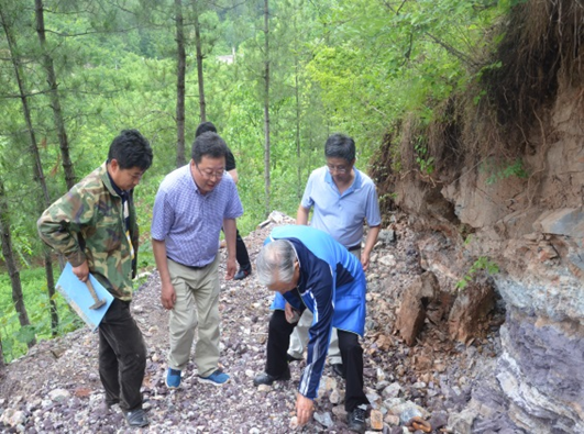 下午二點(diǎn)左右,老部長(zhǎng)一行在劉曉東隊(duì)長(zhǎng)和總工白和的陪同下到達(dá)洛南縣石門(mén)鎮(zhèn)項(xiàng)目部駐地,雖然年近八旬,但精神矍鑠,神采奕奕,不顧鞍馬勞頓,即讓技術(shù)人員將圖紙攤在了汽車(chē)引擎蓋上,聽(tīng)取了隊(duì)長(zhǎng)劉曉東、總工白和對(duì)商洛地區(qū)紫瑪瑙玉石礦賦存情況及全省寶玉石礦調(diào)查工作進(jìn)展的匯報(bào)。